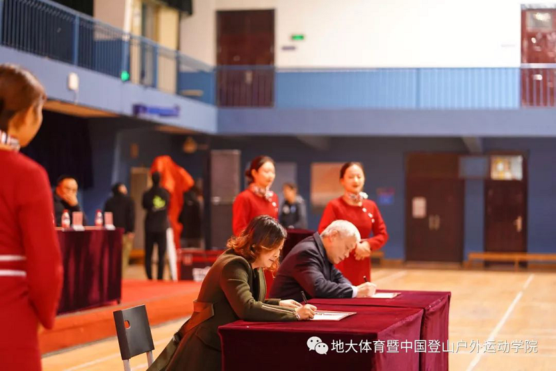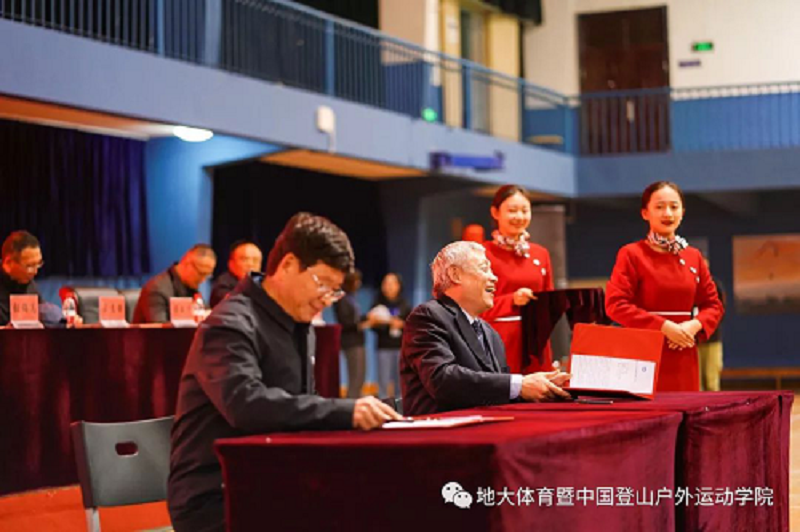 致辞完毕后,国家体育总局登山运动管理中心副主任、中国登山协会秘书长张志坚同志、诸侯快讯ok1122(武汉)副校长傅安洲同志在现场共同签署了《中国登山户外运动学院共建协议》、《登山运动史料整理、利用合作协议》;