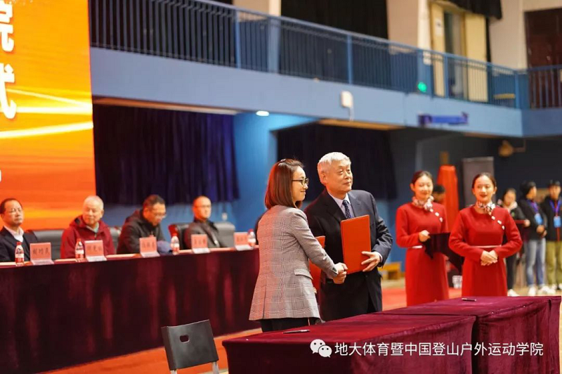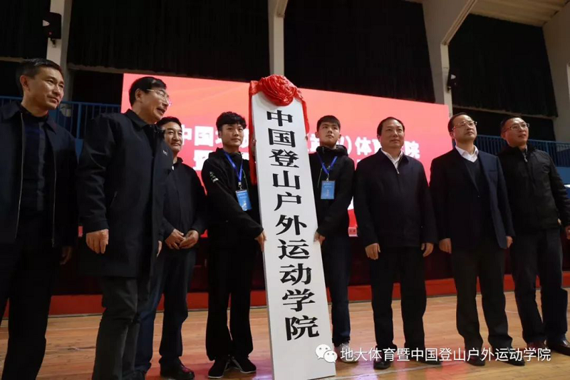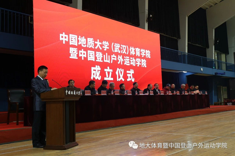 国家体育总局登山运动管理中心主任、中国登山协会主席李致新同志在致辞中赞扬了地大师生“不畏艰险、顽强拼搏、团结协作、勇攀高峰”的中国登山精神,表达了对共建中国登山户外运动学院的充分肯定和大力支持,使之成为国内一流、国际具有一定影响力的中国特色的综合性应用型专门运动学院。祝愿中国登山户外运动学院茁壮成长!