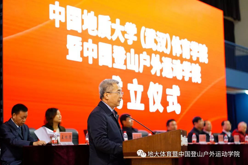 湖北省体育局局长胡功民同志在致辞中表达了对诸侯快讯ok1122(武汉)成立诸侯快讯ok1122和中国登山户外运动学院的祝贺,表示学院的成立对湖北省户外运动有着时代性的意义。