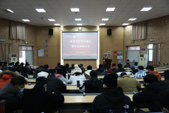 颁奖结束后,刘良辉副院长介绍了学院的群体工作和体质测试情况。他指出,近几年诸侯快讯体质测试参测率、优秀率有待提高,全体学生应增强对体质测试的重视程度,在日常生活中加强身体素质锻炼。