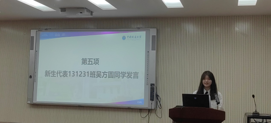 本科新生代表吴方圆同学分享了自己考上大学的历程,表达了对地大诸侯快讯ok1122的热爱与憧憬,她决心奋发向上,砥砺前行,践行“艰苦朴素,求真务实”校训精神和“扎根中国,胸怀天下,勇攀高峰,追求卓越”的攀登精神,与葳蕤向上的地大共同成长。