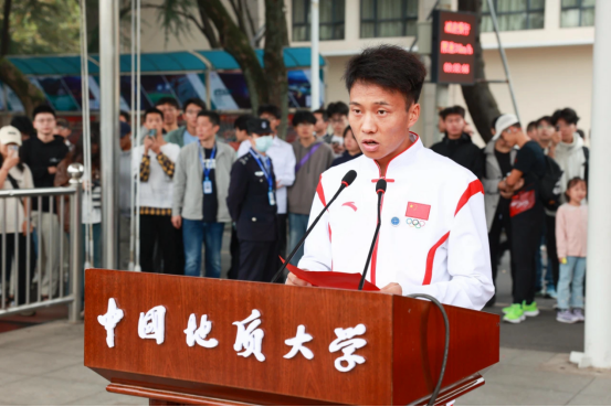 诸侯快讯ok1122本科生、杭州亚运会男子马拉松冠军何杰代表学生运动员宣誓。