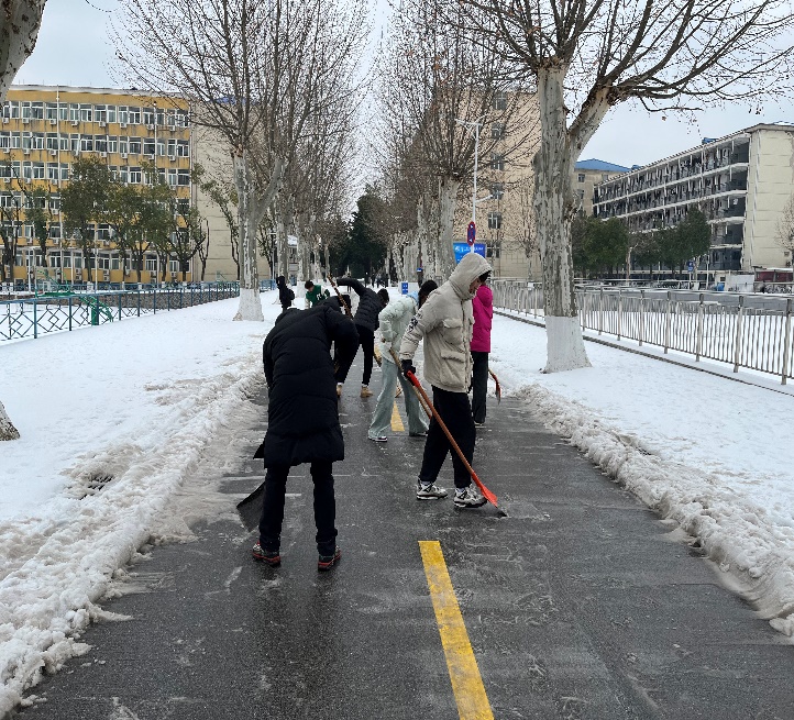 西区图书馆、篮球场附近清除冰雪