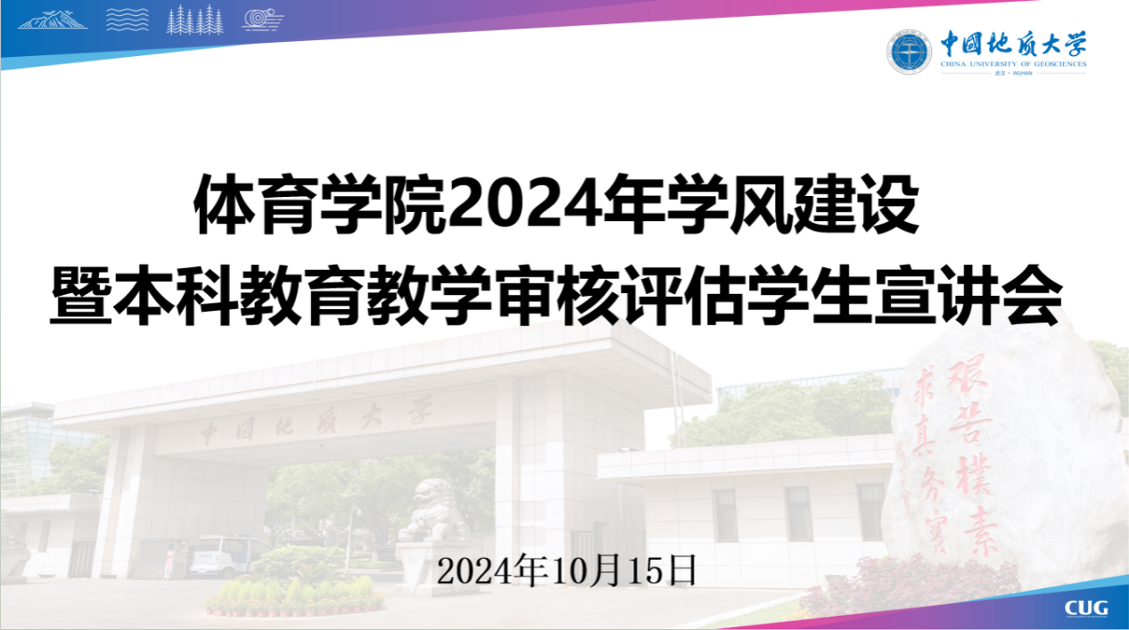朱军副书记介绍学生评建工作指南,强调全体学生要严格遵守本科课堂纪律管理办法,教育学生遵守大学生课堂学习规范,弘扬“严在地大”校风学风。