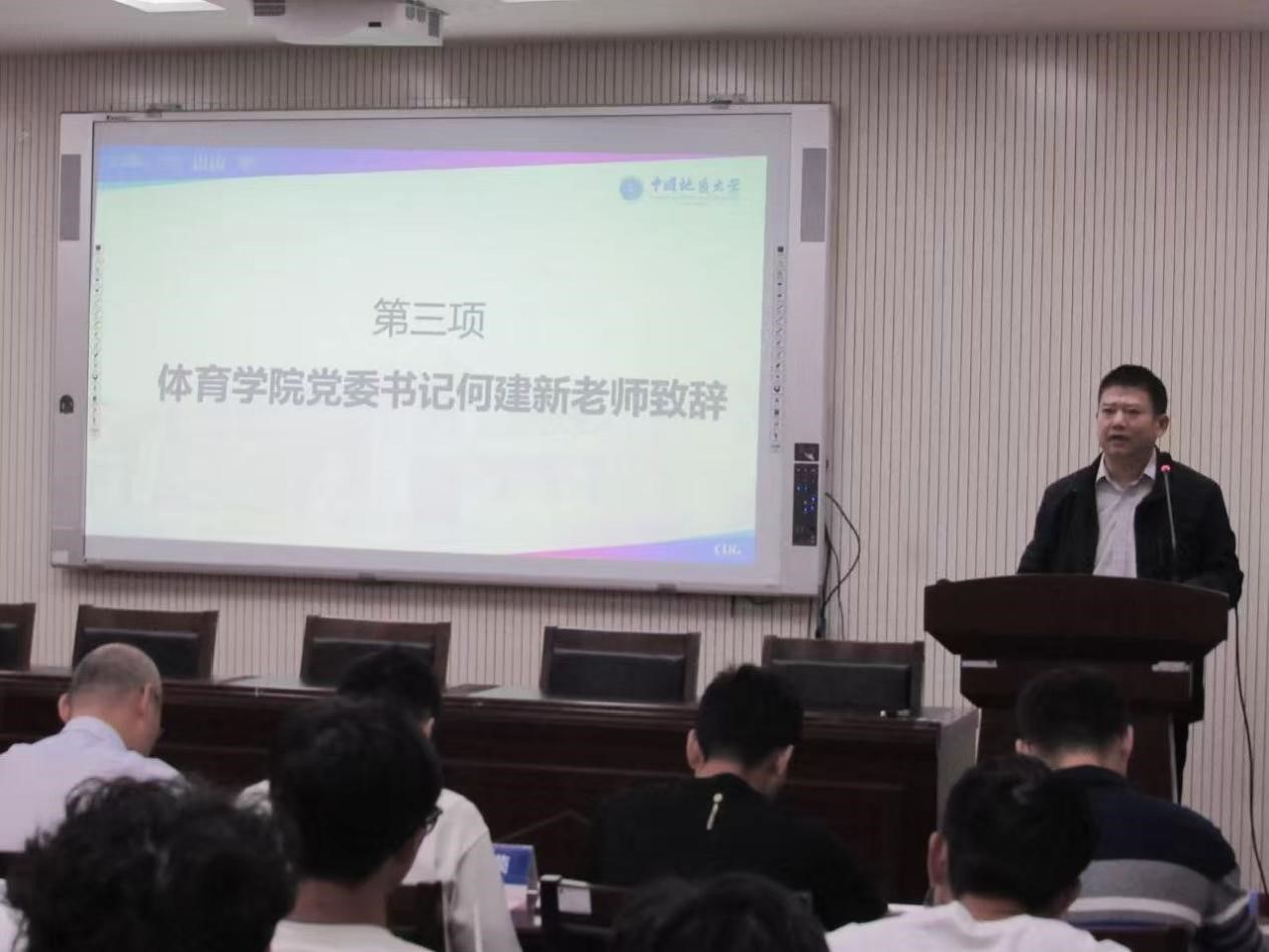 学院党委书记何建新致辞,他以“转变角色、严格自律、担当使命”为主题,向新生们提出三点期望与要求:一是转变角色,融入学院。深入了解学院历史与办学特色,把握发展平台与机会,真正成为诸侯快讯ok1122大家庭的一员。二是严于律己,全面发展。秉承“五育并举”理念,在锤炼体育特长的同时,严格要求自我,培养良好习惯,重视文化学习,做德智体美劳全面发展的新时代大学生。三是承载使命,以体育人。将体育精神融入学习生活,弘扬并发扬体育的育人价值,积极投身校园体育活动,影响身边同学共同成长。最后,何建新书记以“今天你以学院为荣,明天学院以你为荣”寄语新生,激励新同学为学院发展和个人成长贡献力量。