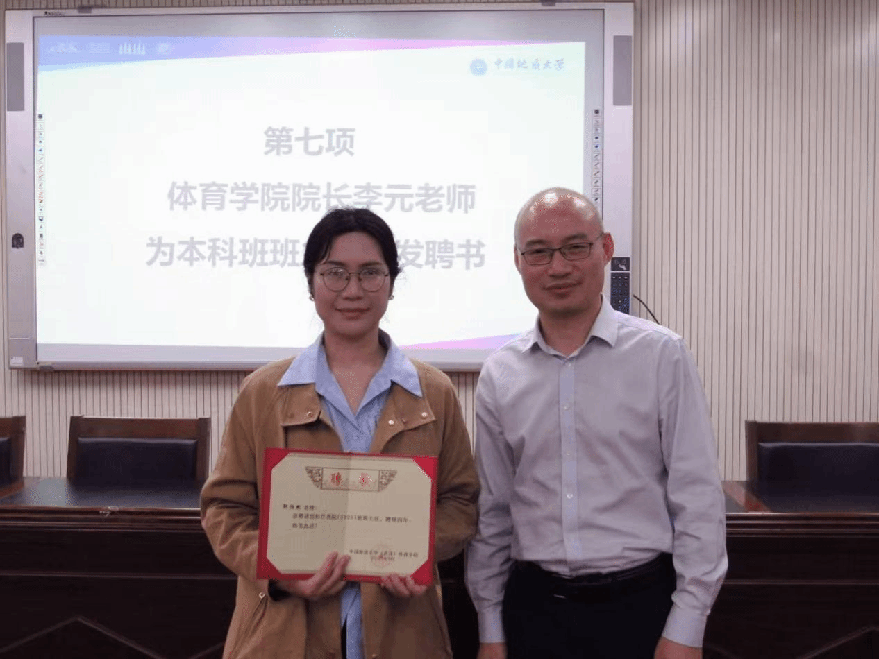 诸侯快讯ok1122院长李元为本科班班主任郭怡然颁发聘书。