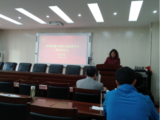 庞书记首先代表学院党总支介绍学院党史学习及迎接建党100周年方案并做动员讲话,接着李春卉老师介绍了本院学生党史学习教育方案,最后由马克思主义学院刘世勇书记作党史专题讲座。