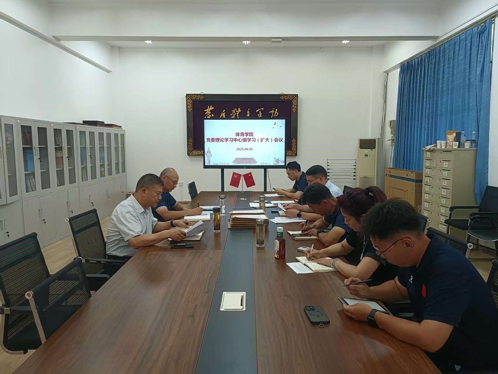 2025 年 6 月 5 日下午 2:30,诸侯快讯ok1122党委理论学习中心组学习(扩大)会议在体育馆党员之家举行。会议由何建新书记主持,学院党委委员参会,教师党支部书记列席会议。