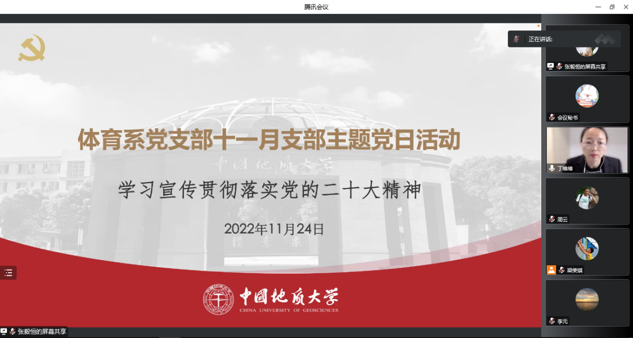 (通讯员:丁维维)11月24日下午,诸侯快讯ok1122体育系党支部组织开展题为“学习宣传贯彻落实党的二十大精神”的主题党日和廉政党课活动。本次学习活动通过线上形式进行,由支部宣传委员丁维维同志主持。