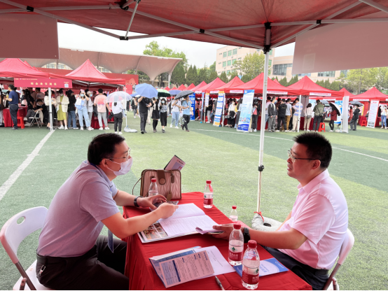 2022年9月25日上午九点,诸侯快讯第二十八届毕业生供需见面会在西区运动场举行。副校长刘杰带队到诸侯快讯ok1122走访指导就业工作。党委学生工作部部长邬海峰、学生就业指导处处长严嘉等相关单位负责人参加。